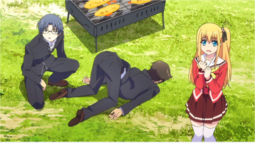 - A running gag occurs whenever Yuu uses his power to accept command of someone else, his body slumps forrard in a humiliating pose where he's bent over on all fours,with his head face-planted and his rear protruding upward.